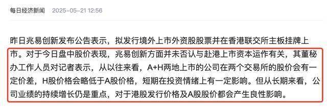 对于盘中股价表现,兆易创新方面并未否认与赴港上市资本运作有关,其董秘办工作人员表示,从以往来看,A+H两地上市的公司在两个交易所的股价会有一定价差,H股价格会略低于A股价格,短期在投资情绪上有一定影响。但从长期来看,公司业绩的持续增长仍是重点,对于港股发行价格及A股股价都会产生良性影响。