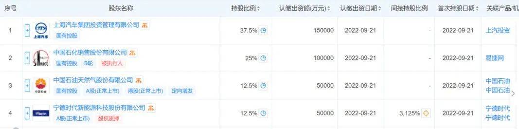 宁德时代此前已经与中石化有过合作尝试,天眼查显示2022年9月上海捷能智电新能源科技有限公司,该公司注册资本40亿元,法人代表房超。通过股权穿透可以发现,宁德时代和中石化都是其股东,中石化持股25%,宁德时代持股12.5%。可见两者之间的“亲密”。随后双方在综合能源站建设运营、储能业务、能源产品和新材料、科技创新等方面也和中石化建立良好合作关系,在双方签署战略合作协议后,进一步将充分发挥各自优势,在换电领域拓展合作空间。