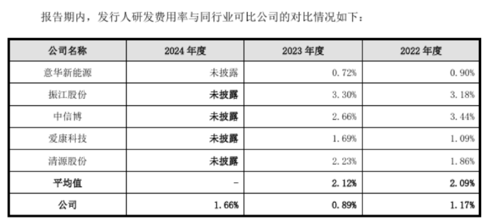 其次,酉立智能在研发方面的投入不足,令人对公司的发展后劲担心。虽然该公司是经江苏省科学技术厅、江苏省财政厅、国家税务总局江苏省税务局联合认定的高新技术企业。2023年7月,公司又被国家工业和信息化部认定为国家级专精特新“小巨人”企业;2023年12月,公司被江苏省工业和信息化厅等部门认定为省级“企业技术中心”。而且公司方面也表示,凭借多年技术创新积累,公司在国内外光伏支架行业建立了较高的知名度,已形成了一套成熟的核心技术体系,与制管、冲压等行业通用技术形成差异,在行业内具备竞争优势,创新能力较强。