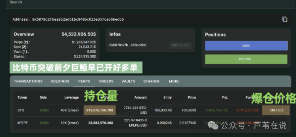 然后币圈新秀也都冲的非常猛,比如这位牛散楞是在这轮牛市做到了一亿身家,凌晨在比特币突破前开仓8亿美金的多单,也就是40倍杠杆做多比特币,跌到10万他就爆仓了,真的非常野,他在11.1万开始止盈,已经卖了一半的仓位。
