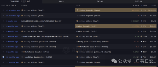首先就是以太坊惊天大瓜。以太坊联合创始人Jeffrey向交易所转了2.6亿美元的ETH,基本上是把所有的仓位都卖了,说是跑路都不为过。