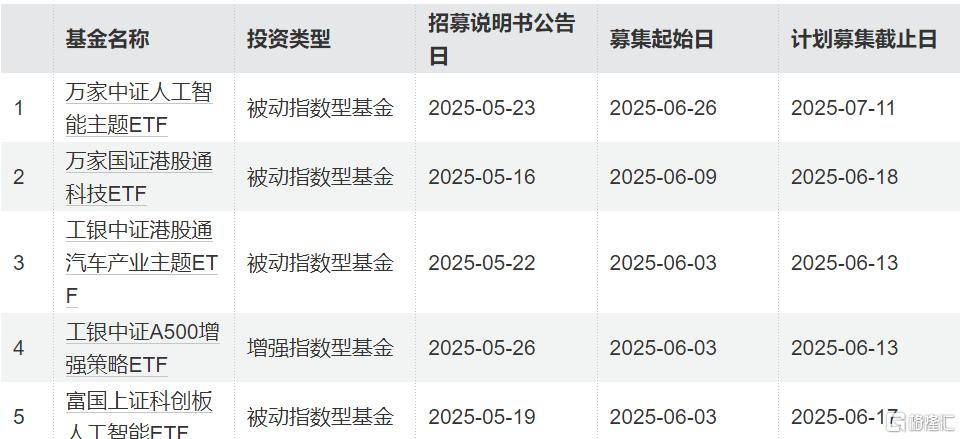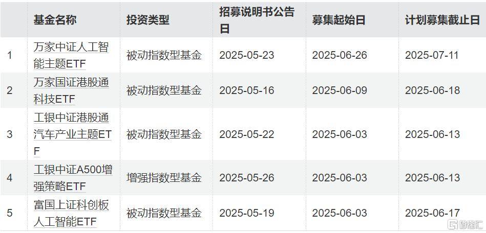 本周将有东财中证沪港深互联网ETF、长城中证红利低波动100ETF、易方达创业板50ETF、富国国证港股通消费主题ETF、华宝中证制药ETF 5只ETF发行。