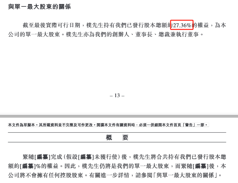 截至最后实际可行日期,朴圣根持有公司已发行股本总额约27.36%的权益,为公司单一最大股东。朴圣根也是公司的创始人、董事长、总裁兼执行董事。