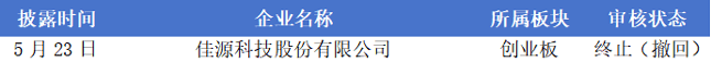 据统计,5月19日至5月25日期间,仅佳源科技股份有限公司终止(撤回)IPO。