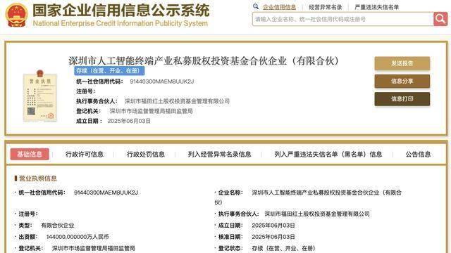 瑞财经 吴文婷 近日,深圳市人工智能终端产业私募股权投资基金合伙企业(有限合伙)正式成立。
