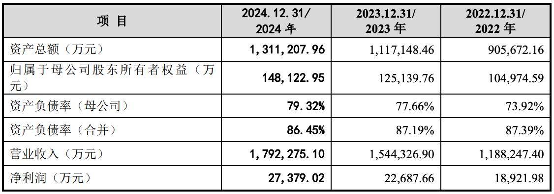 2022年、2023年和2024年,建发致新的营收分别约为118.82亿元、154.43亿元和179.23亿元,净利润分别约为1.89亿元、2.27亿元和2.74亿元,扣非后净利润分别约为1.69亿元、1.91亿元和2.24亿元。