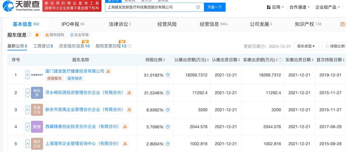 天眼查App信息显示,建发致新成立于2010年8月,前身为上海致新医疗供应链管理有限公司。目前,该公司的注册资本约3.6亿元,法定代表人为余峰,主要股东包括厦门建发医疗健康投资有限公司等。
