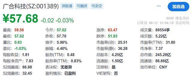 据悉,广合科技于2024年4月2日在深交所上市,截至2025年6月12日收市,报57.68元,总市值逾245亿元。
