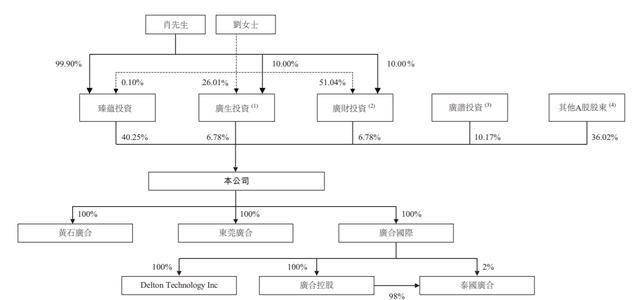 IPO前,肖红星、刘锦婵夫妇合计持股53.81%。广谐和投资(曾红持有66.67%,GP、王峻持有20%、黎钦源持有13.33%))持股10.17%,其他A股股东持股36.02%。