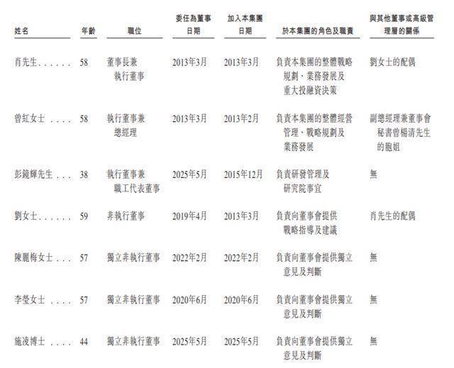 曾红,58岁,于1988年7月取得华南理工大学应用化学学士学位。为执行董事兼总经理。她自2013年2月起一直担任总经理,自2013年3月起一直担任董事。于2025年5月调任为执行董事。