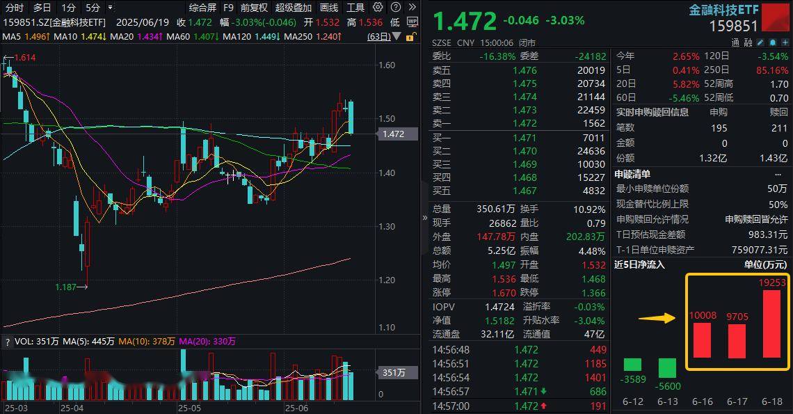 三、高位股回调!金融科技ETF(159851)单边下挫3%,后市怎么走?机构:旗帜鲜明看好金融科技