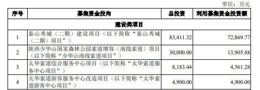 收购太华索道股权项目、收购瑶光阁股权项目、收购少华山旅游索道项目、泰山秀城(二期)建设项目、少华山南线索道项目、太华索道游客中心项目和太华索道服务中心项目。