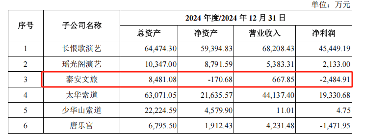 而《铁道游击战》归属的公司泰安文旅,是陕西旅游的重要子公司,2024年度其净利润亏损,净资产为负。
