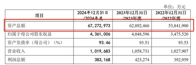东莞银行最新招股说明书显示,东莞银行近年来扩张明显,在资产规模上实现了较好的发展。数据显示,2022年至2024年,东莞银行的总资产规模由5384.19亿元增长至6727.30亿元,增长了1300多亿。2024年总资产规模同比增长6.97%。