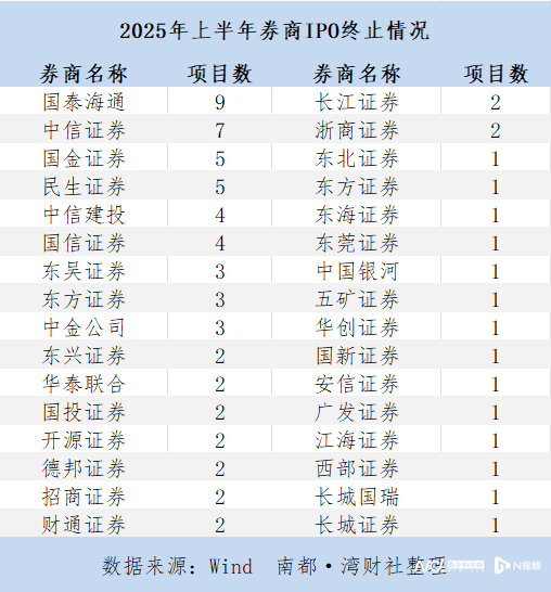 国泰海通、中信证券的整体IPO保荐数量庞大,因此两者的终止数量也同样领衔。国金证券、民生证券同样在IPO领域具有行业领先优势,在2025年上半年的新受理榜中,两者并列第六。从总体上来看,大部分券商的终止项目数与整体保荐数量相关。