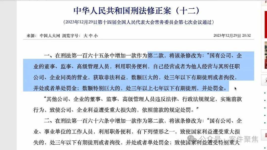 "第一点变化是主体范围大幅扩展了,原来是仅针对国有公司企业的董事监事高管的犯罪主体,现在延伸至所有公司企业的董事、监事、高管。
