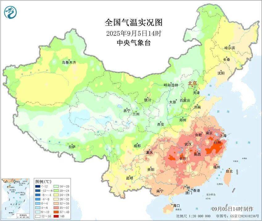 南方在副热带高压控制下,高温盛行。截至14时,浙江建德最高气温达40℃,热度同期少见。杭州今天再度出现高温,已是连续高温34天,即将打破观测史纪录(2022年7月20日至8月23日连续35天)。武汉和南昌今年以来的高温日数也都追平了当地全年高温日数最多纪录,未来如果还有高温,两城市都将刷新纪录。