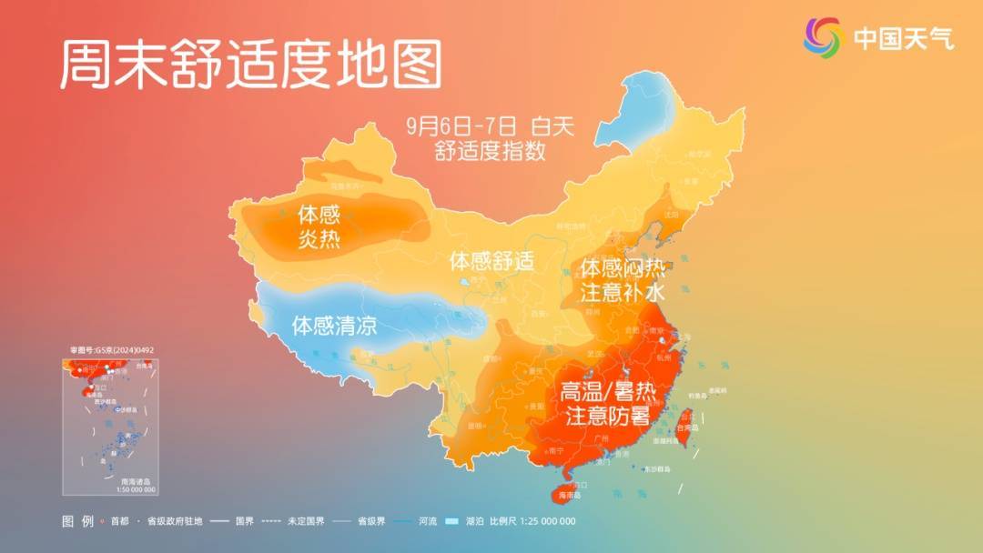 这个周末,随着北方冷空气渗透南下,加上南海有热带扰动发展给华南带来降雨,南方的高温会有所收敛,主要在江南一带还有小范围高温出现。