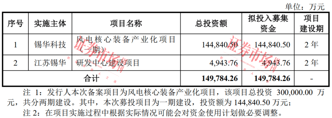 锡华科技本次募集资金主要用于“风电核心装备产业化项目(一期)”和“研发中心建设项目”。