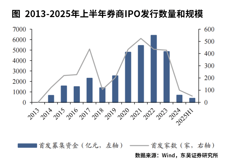 数据显示,2025年上半年平均每家IPO公司募资规模为7.3亿元,同比基本持平。2025 年上半年,市场平均的IPO承销及保荐费率为6.83%,较2024年的6.7%继续小幅提升,费率上升的主要原因是项目规模下滑,而承销费用相对刚性。