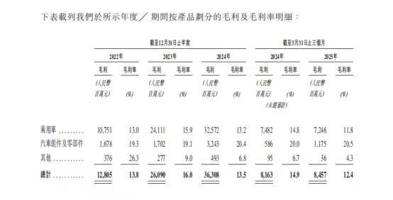 此外,奇瑞汽车的销售费用也在增加,数据显示,2022年-2024年前三季度,公司销售费用逐年升高,分别为32.07亿元、55.57亿元、58.04亿元。销售费用的增加虽然在一定程度拉动了销量,但也压缩了利润空间。奇瑞整体毛利率则表现不佳,2023年、2024年及2025年一季度,毛利率分别为16%、13.5%、12.4%,不但在行业内偏低,还逐年下滑。