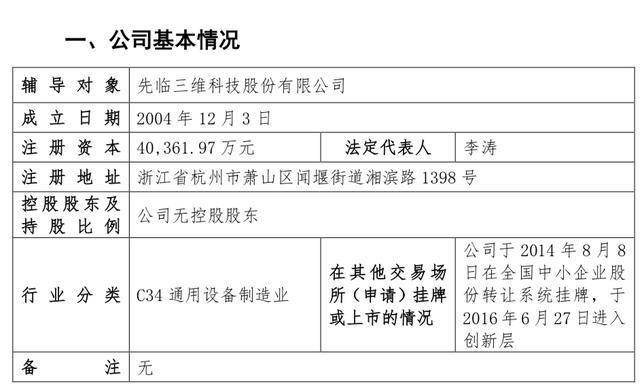瑞财经 严明会 9月8日,先临三维科技股份有限公司(以下简称:先临三维)在浙江证监局完成IPO辅导备案,拟北交所上市,辅导机构中金公司。
