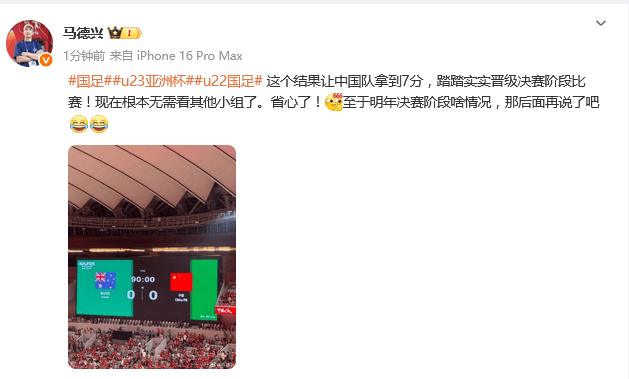 体坛周报马德兴:这个结果让中国队拿到7分,踏踏实实晋级决赛阶段比赛!现在根本无需看其他小组了。省心了!至于明年决赛阶段啥情况,那后面再说了吧。