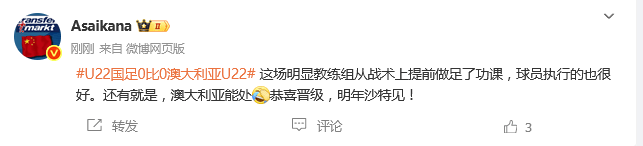 朱艺:这场明显教练组从战术上提前做足了功课,球员执行的也很好。还有就是,澳大利亚能处,恭喜晋级,明年沙特见!