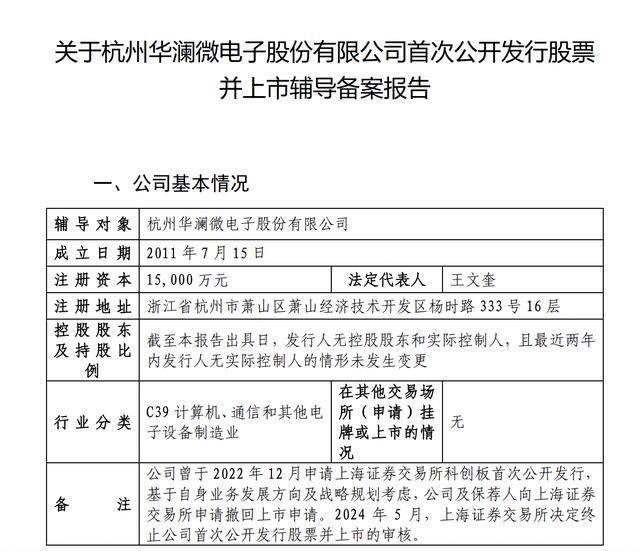 报告显示,华澜微曾于2022年12月申请上海证券交易所科创板首次公开发行,基于自身业务发展方向及战略规划考虑,公司及保荐人向上海证券交易所申请撤回上市申请。2024年5月,上海证券交易所决定终止公司首次公开发行股票并上市的审核。