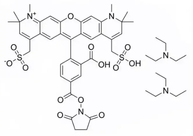 AF594 Ethyl NHS Ester是一种水溶性红色荧光标记试剂,属于磺化罗丹明衍生物。N-羟基琥珀酰亚胺酯(NHS ester),可与蛋白质、抗体等生物分子中的伯胺(-NH₂)在pH 7-9条件下高效偶联。