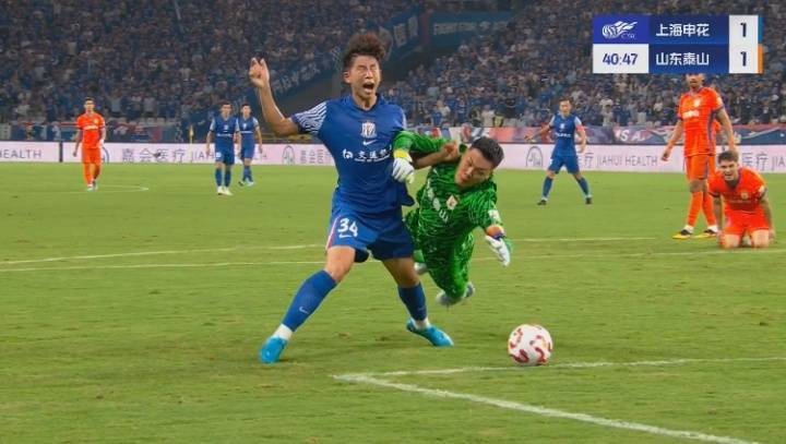 第40分钟,王大雷送点,裁判判罚点球。王大雷送点,吴曦点射!申花2-1领先泰山