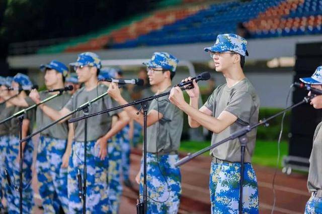 由参训新生编组而成的军乐团亮相出征仪式。《人民军队忠于党》《团结友谊进行曲》《我和我的祖国》,铿锵有力的旋律回荡体育场。