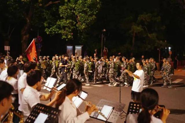 9月11日零点,各新生连队依次有序出发。路边一些市民,注视着列队经过的同学们,不时拍照留念。