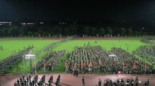 9月4日20时30分许,上海交通大学2025级学生军训团5000余名参训师生,在体育场有序集结,随后进行20公里夜间行军。