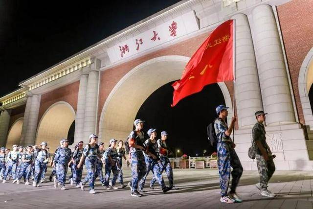 9月4日晚,浙江大学2025年学生军训师6000余名学生迅速集结,开启行军综合演练。
