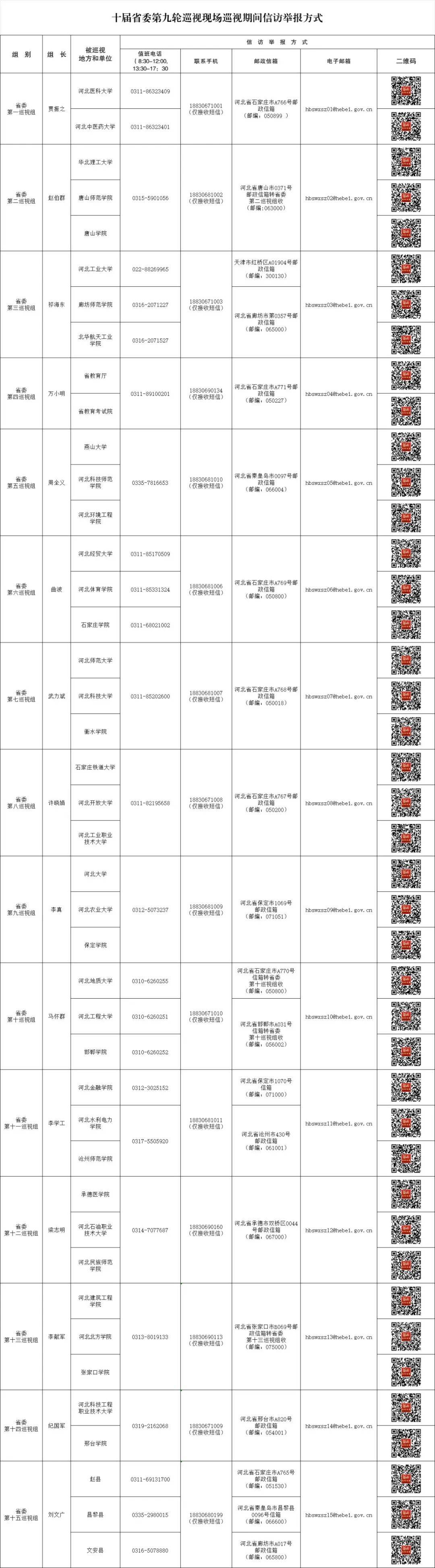十届河北省委第九轮巡视现场巡视期间信访举报方式公布↓↓↓