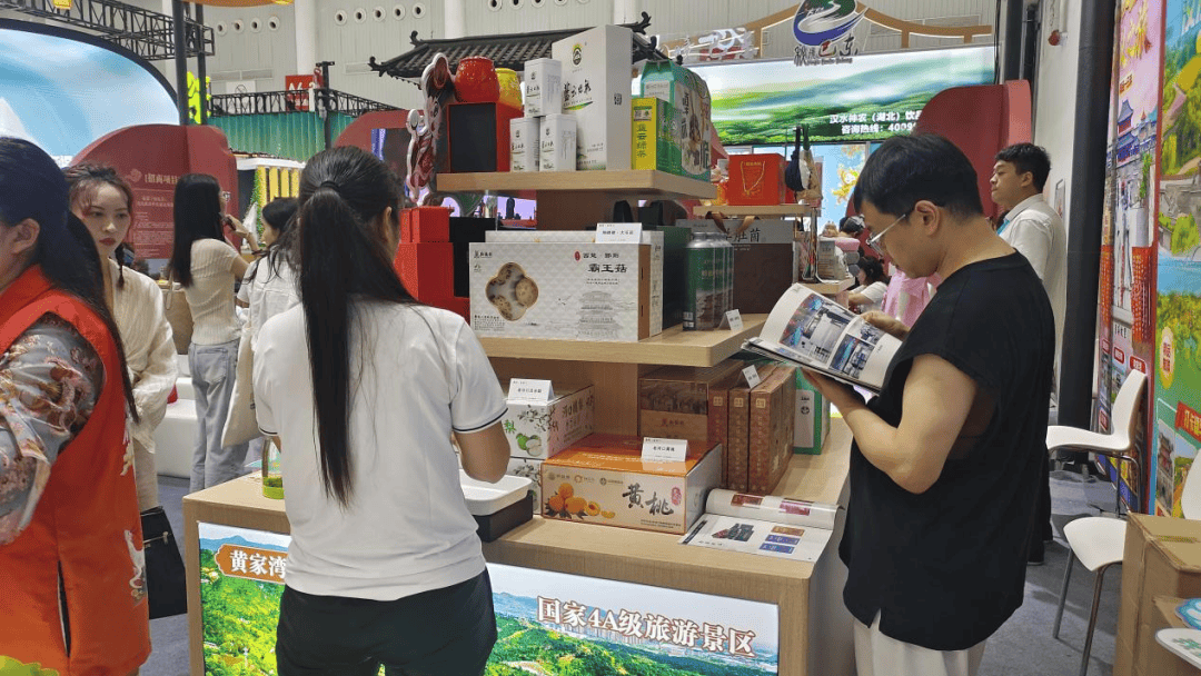 展销区人气高涨,“金南漳”、“南小漳”系列特色旅游商品、文创产品及地方特产琳琅满目。从特色文创到精美工艺品,从有机农产品到地方美食,每一件都承载着南漳的文化与故事。