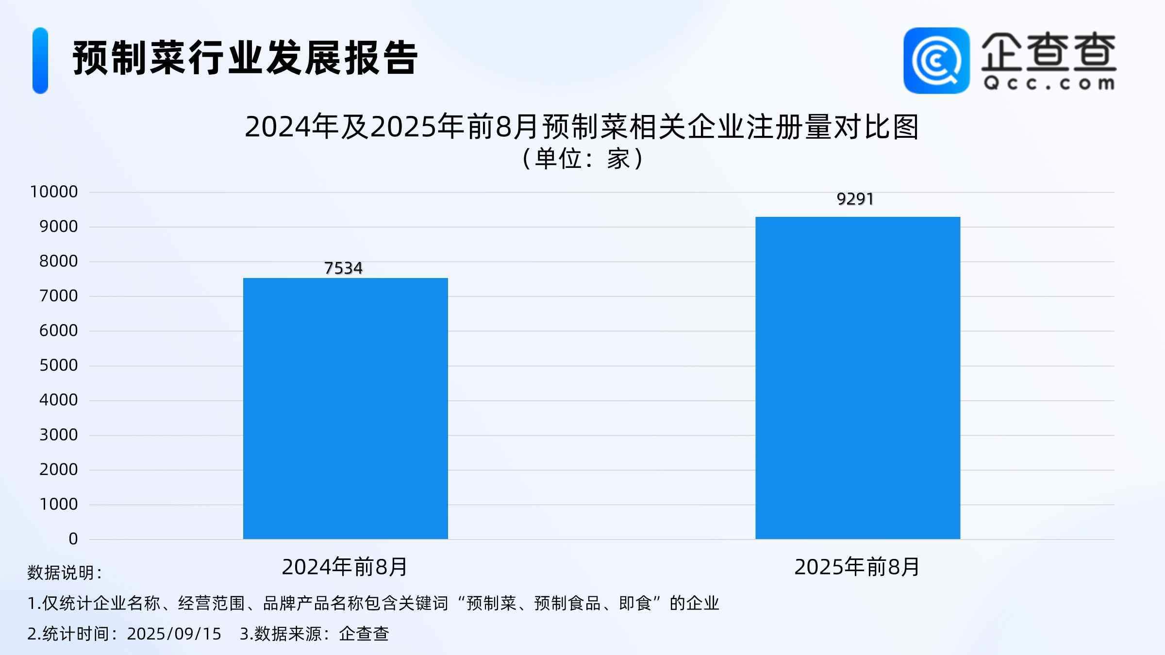 企查查数据显示,截至目前,今年已注册9788家预制菜相关企业,其中前8月注册9291家,同比增长23.32%。