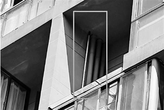 站在朗诗国际街区7幢楼下抬头望,能看见家家户户阳台上的这根新燃气立管。
