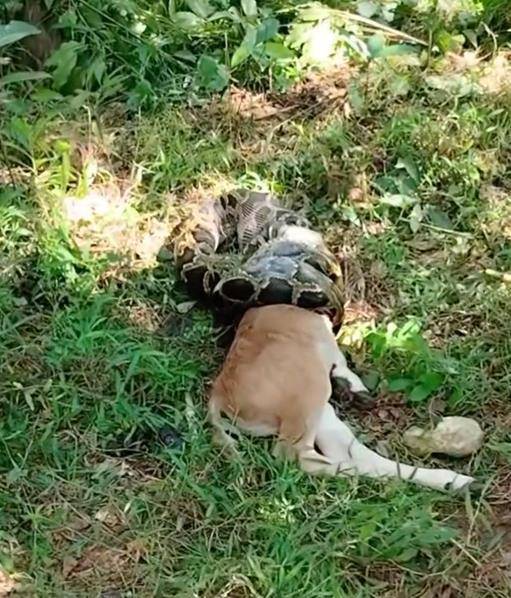 16日下午,当地镇政府工作人员向极目新闻记者介绍,吞食牛的是一条蟒蛇,是保护动物,已在偏远地点将其放生,“发现时牛死了,但还没有被完全吞下去,是一头小牛犊。”当地消防队工作人员在接受采访时介绍,此蟒蛇重约20斤,“送到了直线距离10公里外的地方放生了。”