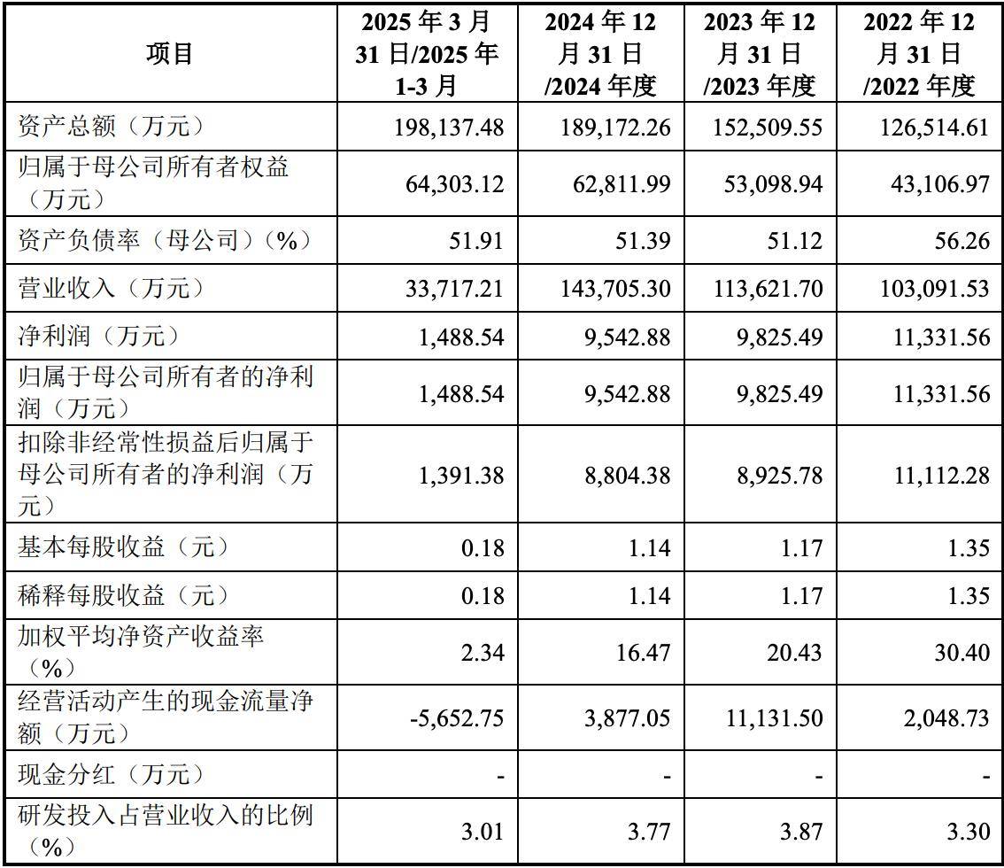 2022年、2023年、2024年度以及2025年第一季度,纳百川的营收分别约为10.31亿元、11.36亿元、14.37亿元和3.37亿元,净利润分别约为1.13亿元、9825.49万元和9542.88万元,扣非后净利润分别约为1.11亿元、8925.78万元、8804.38万元和1391.38万元。