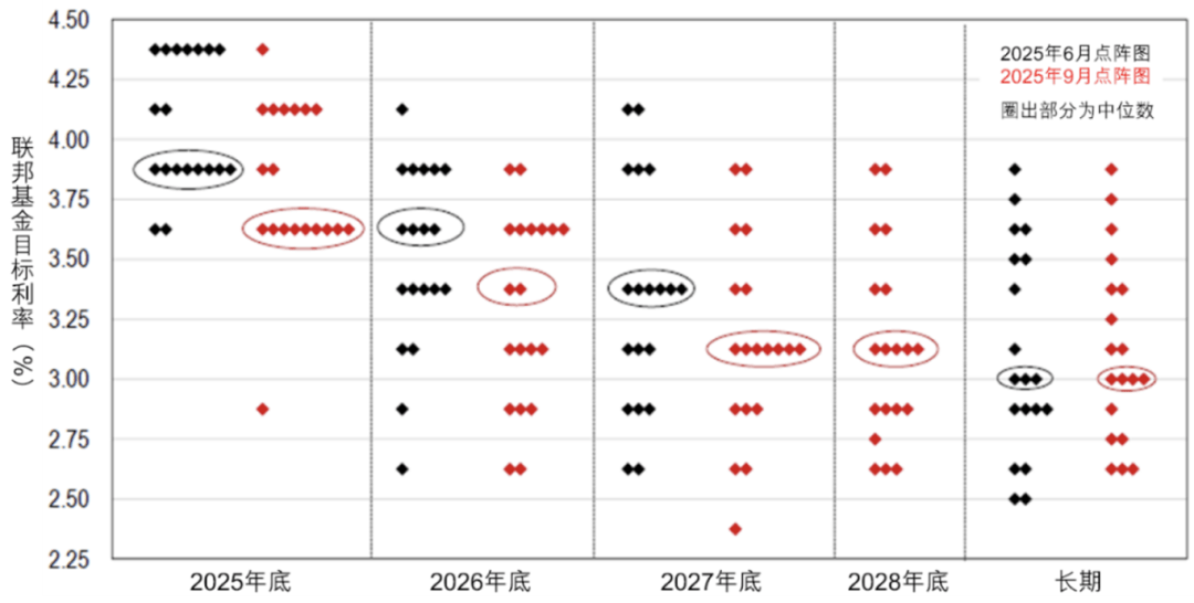 上周,美联储9月FOMC合预期降息25bp,鲍威尔发言偏鹰,市场对后续降息路径和联储“点阵图”出现较大偏差。当地时间9月17日,美联储召开了9月FOMC会议,以11票赞成、1票反对的投票结果决定降息25bp至4.00%-4.25%,维持缩表节奏不变。然而,鲍威尔在新闻发布会上整体态度偏鹰,他承认了劳动力市场的降温,但也强调本次降息是出于风险管理考量,同时重申政策将保持逐会决策,避免过早预设路径。然而,市场对降息显然有更高期许,当前利率期货隐含的到明年年底的利率比联储“点阵图”中位数低0.5%左右。由于金价近期上涨可能部分受到了较强降息预期的驱动,故而未来若情绪减弱,金价可能相应回调。
