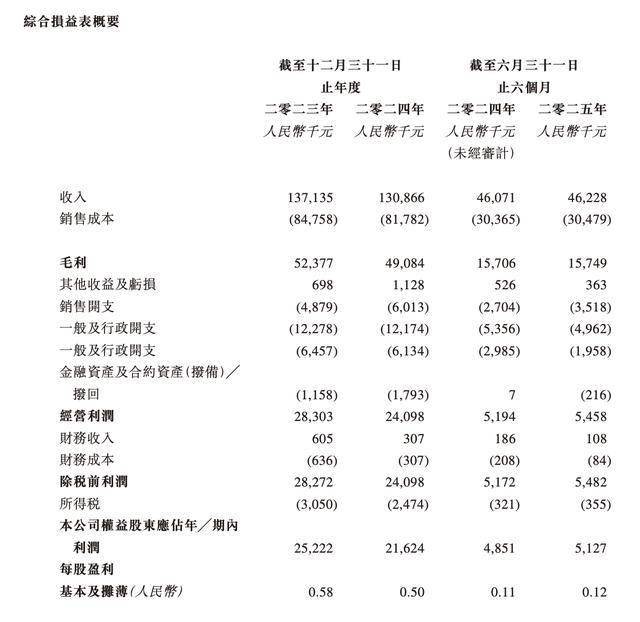 2025上半年,公司实现收入为4622.8万元,同比增长0.34%;公司权益股东应占期内利润为512.7万元,同比增长5.69%。