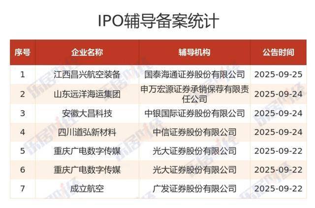 另外,截止统计时间,IPO辅导备案增加7家,环比上升40%。