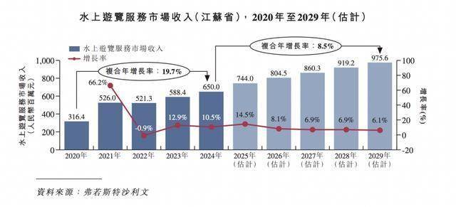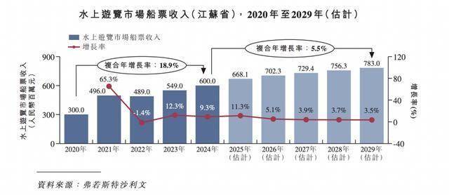 在这些举措的支持下,预计到2029年,江苏水上游览市场的船票收入将达到人民币783.0百万元,自2024年起复合年增长率为5.5%。