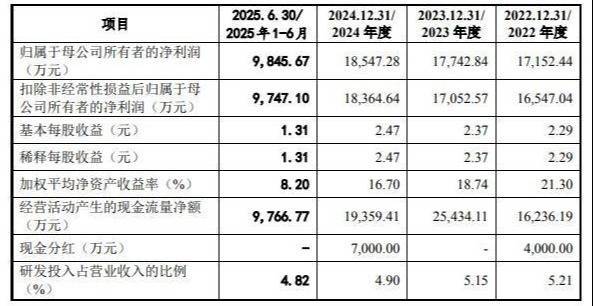 招股书显示,报告期内(2022年至2024年及2025年上半年),欣兴工具分别实现营业收入3.91亿元、4.25亿元、4.67亿元及2.44亿元,扣非归母净利润分别为1.65亿元、1.71亿元、1.84亿元及9,747.10万元。