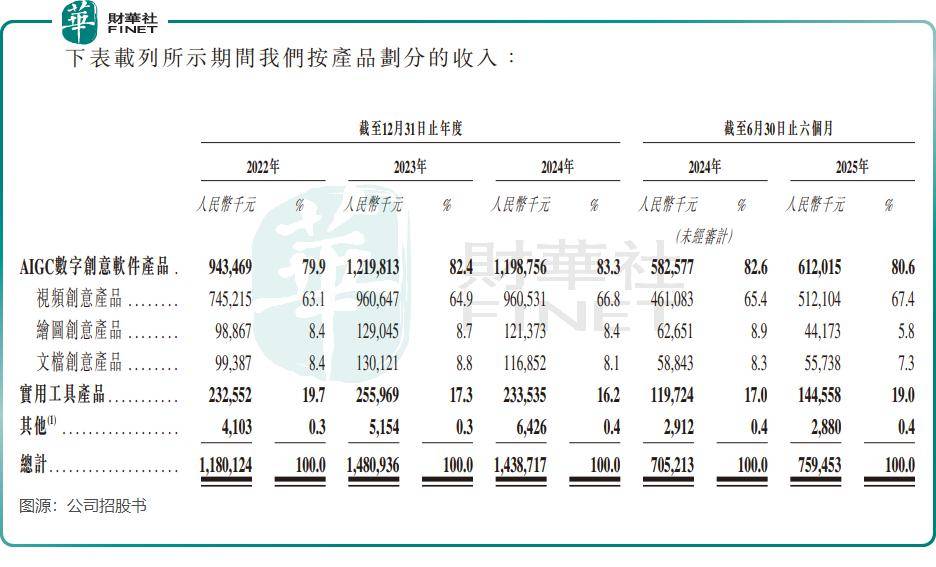 招股书显示,2022 年至 2024 年及 2025 年上半年,万兴科技的收入分别为 11.8 亿元、14.81 亿元、14.39 亿元及 7.59 亿元。期内利润方面,上述期间分别为 6429.2 万元、1.08 亿元、-1.57 亿元及 -5471.2 万元,2024 年全年及 2025 年上半年均由盈转亏。