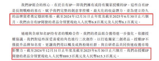 《财中社》注意到,对公司当前的收入来说,TOP TOY自有IP贡献的收入尚影响微乎其微。招股书显示,2024年和2025年上半年,公司由自有IP开发的产品分别实现收入680万元及610万元。