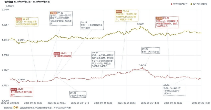 上周债市多空博弈激烈,曲线呈现“熊平陡峭化”特征,随着发布会行情预期落空,债市走出短线下跌行情后回归震荡,周尾14天期逆回购重现叠加市场传来护盘利好,迎来稍许修复。具体而言,周一央行对流动性呵护支撑市场情绪,现券收益率普遍下行;周二央行早盘14D投放落空,叠加债基赎回费及公募新规消息下,债市盘初即大幅下跌;周三债市延续跌势,长债利率再上台阶;周四早盘债市空头情绪趋于极致,午后迎来修复,国债期货率先反弹,长债收益率快速下探;周五债市延续修复情绪,现券收益率盘中多数下行,券商、险资买入指数逐步增强,基金、银行保持卖出态势。全周走势复盘如下图所示。