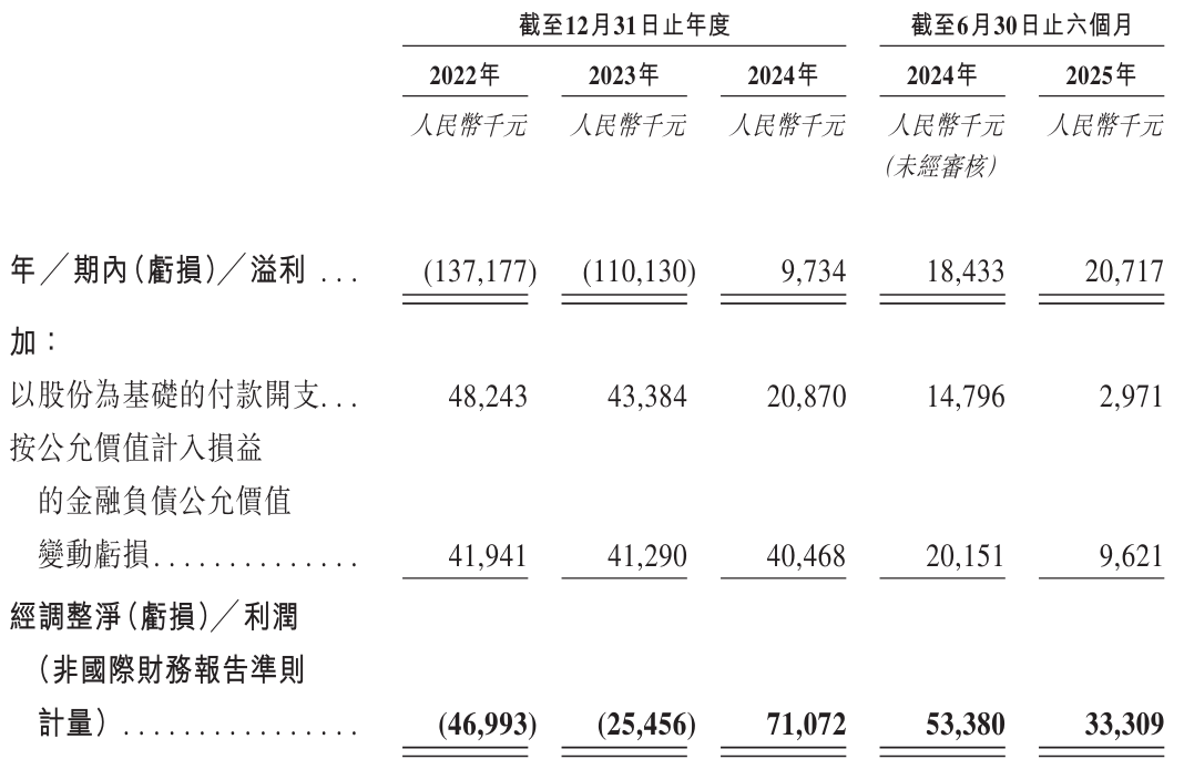 聚芯微电子2022年、2023年、2024年经调整净利分别为-4699万元、-2546万元、7107万元;2025年上半年经调整净利3331万元。